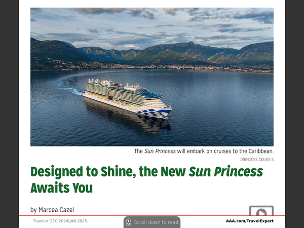 Step aboard the Sun Princess, the crown jewel of Princess Cruise Line’s latest Sphere Class ships, where comfort and adventure converge on the open sea. This brand-new vessel offers a perfect blend of opulent accommodations, world-class dining and a stunning array of entertainment options, ensuring an unforgettable experience for every type of traveler.